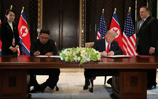 Em um dos quatro itens do documento, o líder norte-coreano se compromete a trabalhar pela desnuclearização completa da península coreana, reafirmando o que foi determinado pela Declaração de Panmunjon, assinada em 27 de abril de 2018 pelas duas Coreias.