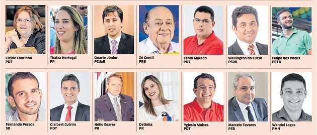 Detinha (PR), Cleide Coutinho (PDT), Duarte Jr. (PCdoB), Zé Gentil (PRB), Othelino Neto (PCdoB), Márcio Honaiser (PDT), Drª Thaiza (PP), Adriano Sarney (PV), Carlinhos Florêncio (PCdoB), Neto Evangelista (DEM), Marcelo Tavares (PSB), Professor Marco Aurélio (PCdoB), Fernando Pessoa (Solidariedade), Andreia Rezende (DEM), Edson Araújo (PSB), Rafael Leitoa (PDT), Ana do Gás (PCdoB), Adelmo Soares (PCdoB), Rigo Teles (PV), Glalbert Cutrim (PDT), Paulo Neto (DEM), Daniella Tema (DEM), Vinícius Louro (PR), Yglésio Moisés (PDT), Hélio Soares (PR), Antônio Pereira (DEM), Ciro Neto (PP), Arnaldo Melo (MDB), Roberto Costa (MDB), Fábio Macedo (PDT), Rildo Amaral (Solidariedade), Ricardo Rios (PDT), Leonardo Sá (PRTB), Zé Inácio (PT), Pará Figueiredo (PSL), Helena Duailibe (Solidariedade), Mical Damasceno (PTB), César Pires (PV), Pastor Cavalcante (PROS), Wellington do Curso (PSDB), Wendell Lajes (PMN), Felipe dos Pneus (PRTB).