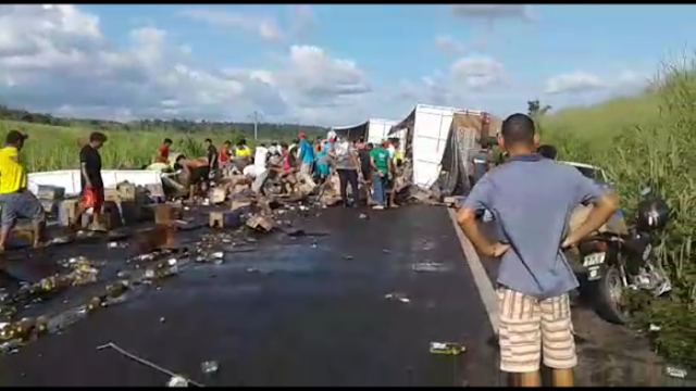 No último dia 28 de fevereiro, uma carreta tombou e foi saqueada após motorista tentar fugir da assaltantes
