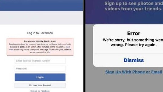 Usuários relatam dificuldades para postar conteúdos nos perfis do Facebook e do Instagram. As tentativas resultam em uma mensagem de problema para atualizar o status.