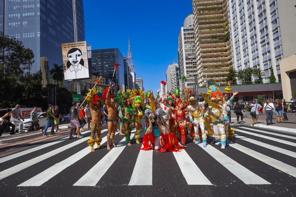 O Governo do Maranhão levou uma comitiva para o lançamento do São João do Maranhão 2024 no Hotel InterContinental São Paulo, para a noite desta quinta-feira (2), como forma de promover a festa maranhense. Ao meio-dia, uma prévia da apresentação de lançamento foi realizada na via mais famosa da capital paulista e um dos maiores centros empresariais da América Latina: a Avenida Paulista. Inusitadamente, os brincantes do Boi de Morros atraíram a atenção de todos que passavam no local.