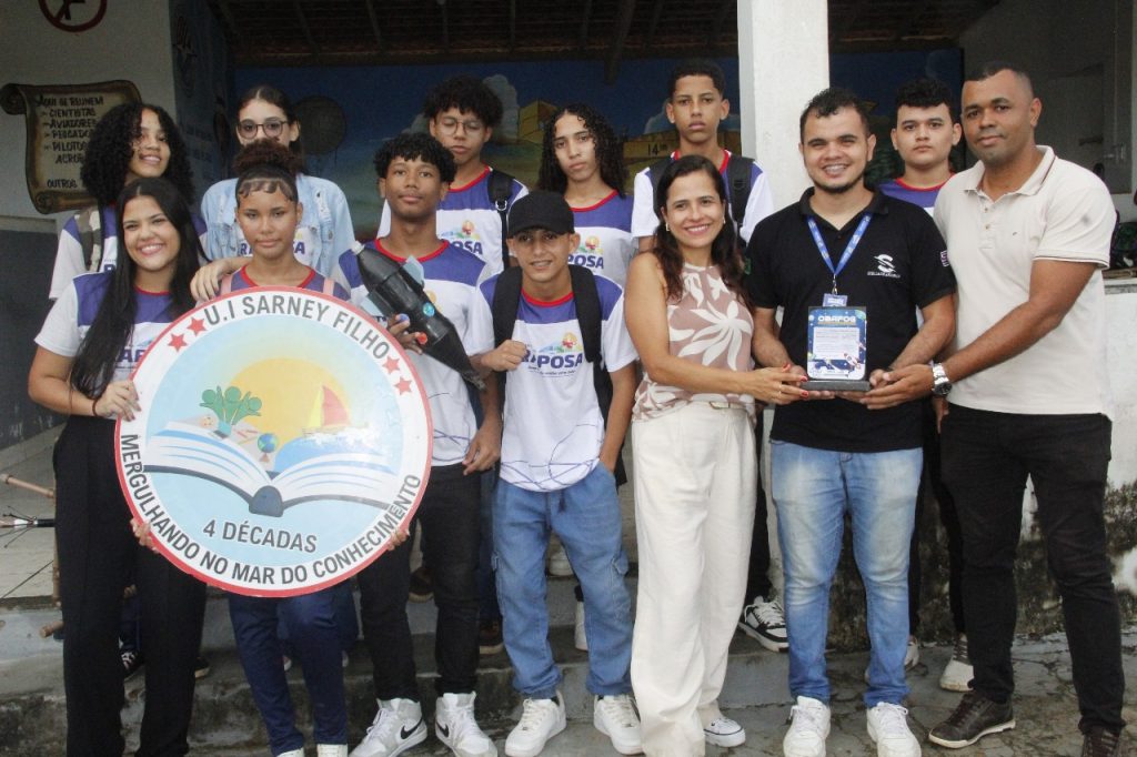 Durante o evento, a secretária municipal de Educação, Verismar Gomes da Silva, foi representada por sua adjunta, Francisca Trindade, que recebeu uma placa em homenagem ao seu olhar sensível para a educação e pelo apoio essencial a ações que promovem o conhecimento científico e inspiram os estudantes por meio da OBAFOG.